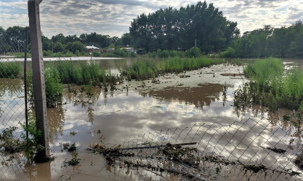 El cuenco o reservorio del barrio Villa Germinal, en el norte de Santa Rosa, se encontraba en la mañana de este martes colapsado luego de las lluvias que se iniciaron ayer y culminaron en la madrugada de hoy. Las calles que lo rodean están totalmente anegadas.