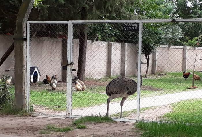 El ñandú permanece en cautiverio en el cerco de una casa emplazada en el barrio Escondido de Santa Rosa. Al parecer, se encontraría en buen estado y bien alimentado.