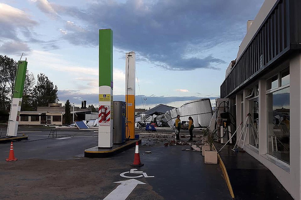 Una tormenta eléctrica, con fuertes ráfagas de viento, afectó Realicó. Arrancó árboles y ramas de importantes dimensiones, tiró tapiales y arrancó chapas, carteles y el techo de la estación GNC ubicada sobre ruta nacional 188.