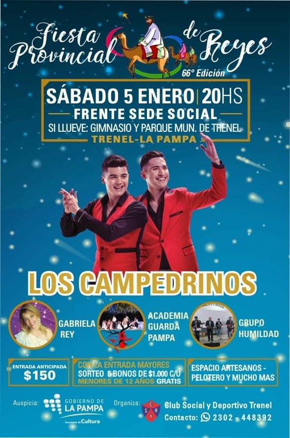 Se anunció la 66º edición de la Fiesta Provincial de Reyes, que se desarrollará el 5 de enero, desde las 20 horas, en la localidad de Trenel.