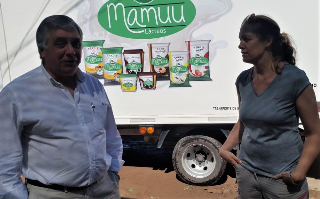 Llegó este jueves a Santa Rosa el primer cargamento de leche, yogurt y dulce de leche de la marca Mamuu. El camión comenzó con la descarga en el supermercado Gabi – And, de la avenida Luro. Allí estuvo el ministro de la Producción, Ricardo Moralejo, junto a una de las propietarias del súper, Andrea Sacks, y funcionarios. También comenzó a distribuirse en otros súpers de empresarios santarroseños y despensas de barrio.