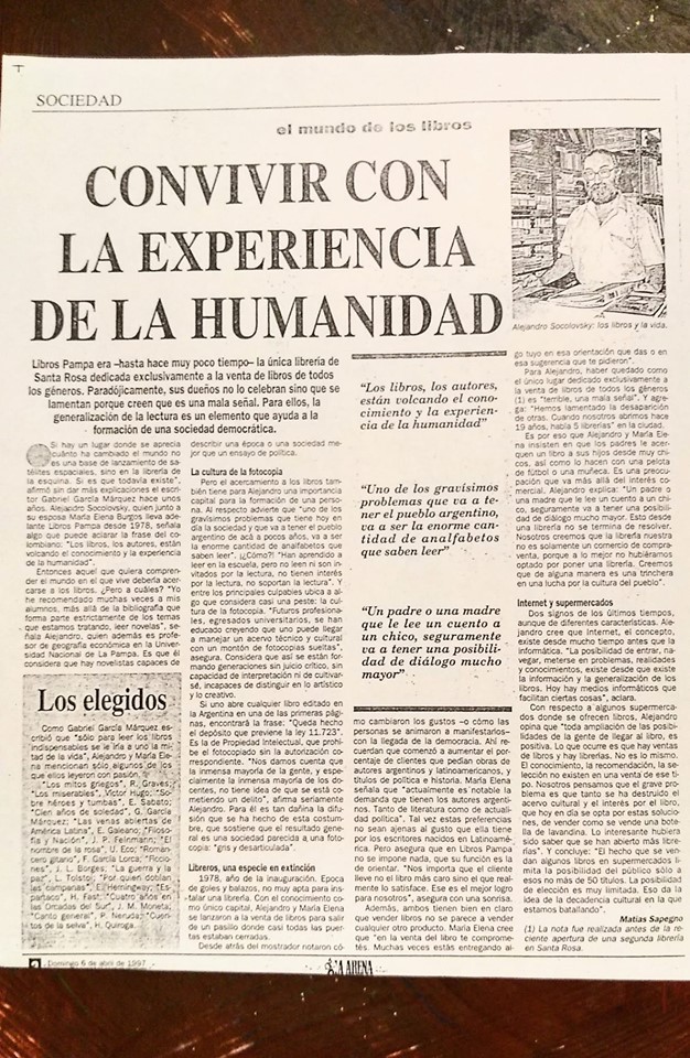 Como editor del suplemento Caldenia, Wálter Cazenave me pidió en 1997 que hiciera una nota sobre Libros Pampa, cuando era la única librería de Santa Rosa.