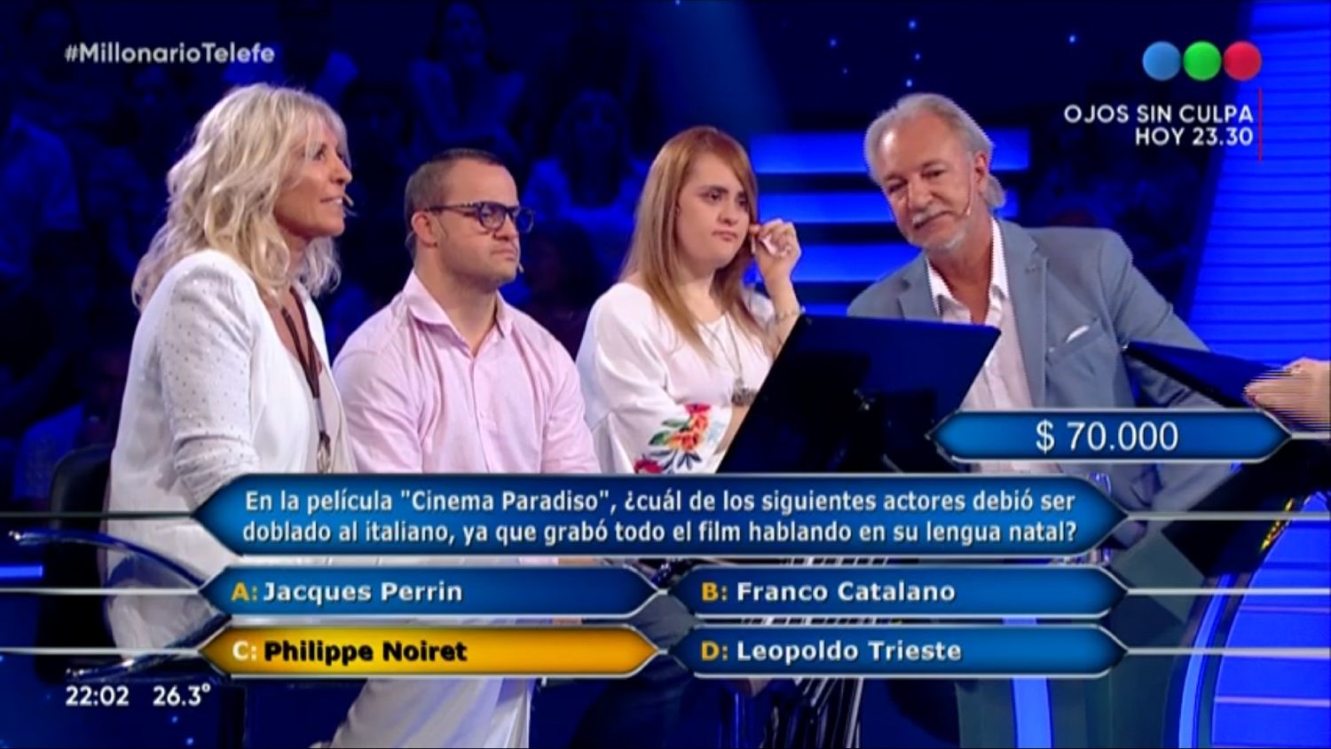 En la edición de este martes de ¿Quién quiere ser millonario? se vivió el “momento más tierno y más emotivo del ciclo”, según dijo el propio conductor del envío Santiago Del Moro. Martín y Jimena, dos jóvenes de Pico que tienen síndrome de Down, fueron los protagonistas excluyentes: él le pidió matrimonio frente a las cámaras.