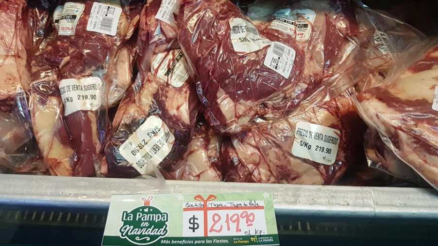Supermercados y carnicerías comenzaron a poner en mostrador los cortes de asado, cima y tapa de asado a 219,9 pesos por kilo, en el marco del programa La Pampa en Navidad.