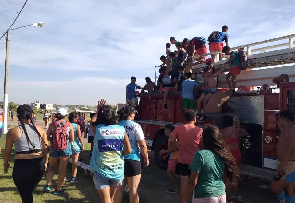 Un grupo de jóvenes, que concurren al Taller de Adolescentes Pro Vida, en Santa Rosa, tiraron este lunes a la tarde de una autobomba de los Bomberos de la Unidad Regional I de la Policía.
