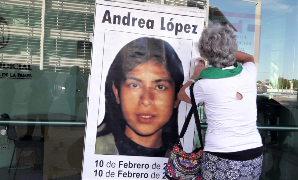 Este lunes 10, al cumplirse 16 años de su femicidio, organizaciones feministas y familiares recordaron a Andrea López en un acto en el Centro Judicial de Santa Rosa y pidieron que se «reabra la causa», se amplíe la búsqueda y se hagan más excavaciones. Además, recordaron a otras víctimas de femicidio, como Sofía Viale, María Puebla, Flavia Fernández, Valeria Coggiola y Mirta Alvarado. También a Camila Guevara, la primera víctima de femicidio en 2020 en La Pampa.