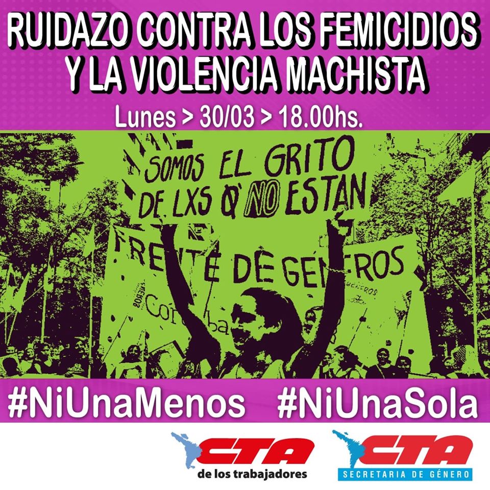 La Secretaría de Género de la Centra de Trabajadores Argentinos convocó para este lunes a un «ruidazo» contra los femicidios y la violencia machista.