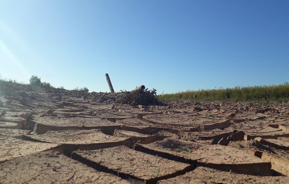 La Secretaría de Recursos Hídricos de La Pampa publicó una fotografía de un brazo del río Colorado, en la zona de 25 de Mayo, totalmente seco.