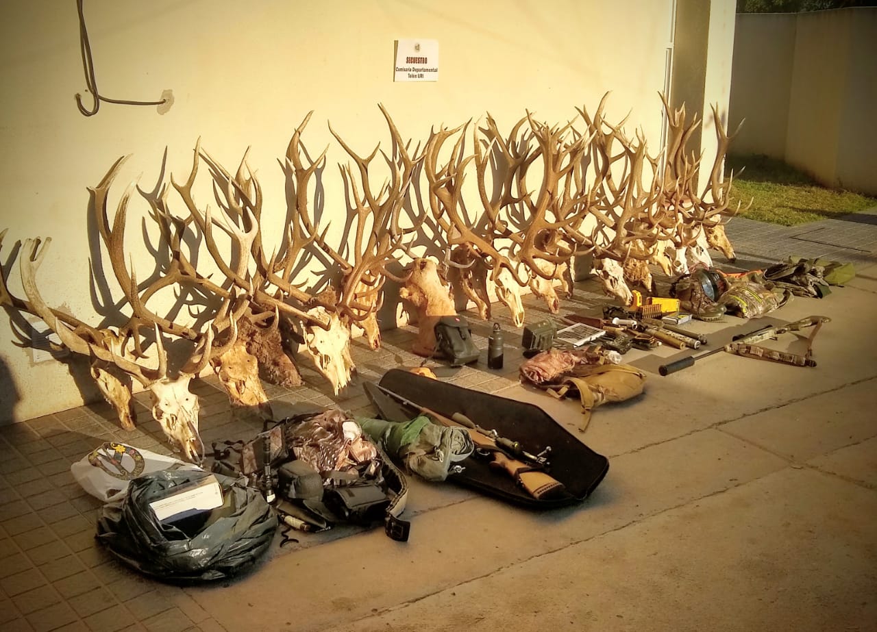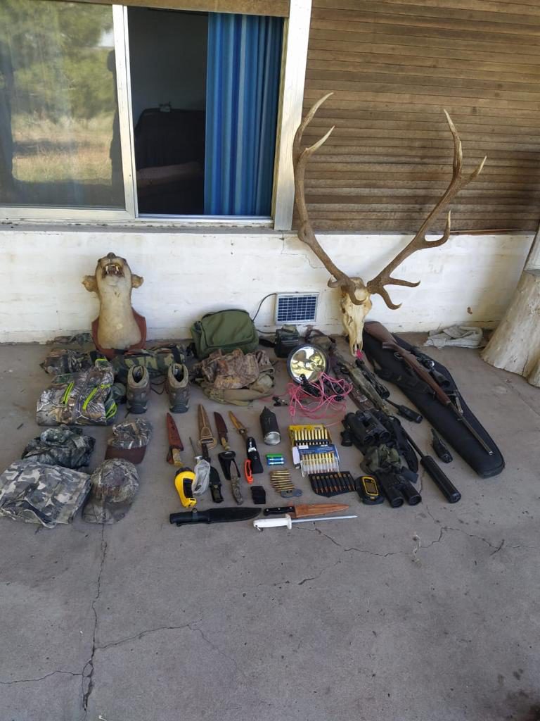 La Policía de Telén encabezó dos allanamientos en una casa y un campo, luego de una denuncia anónima contra dos personas por caza furtiva. Secuestraron 16 cabezas de ciervos y dos cráneos y tres cueros de pumas, además de armas y otros elementos. Esas piezas, según la acusación, fueron capturadas en medio de la veda de caza y de la cuarentena obligatoria por la pandemia de coronavirus.