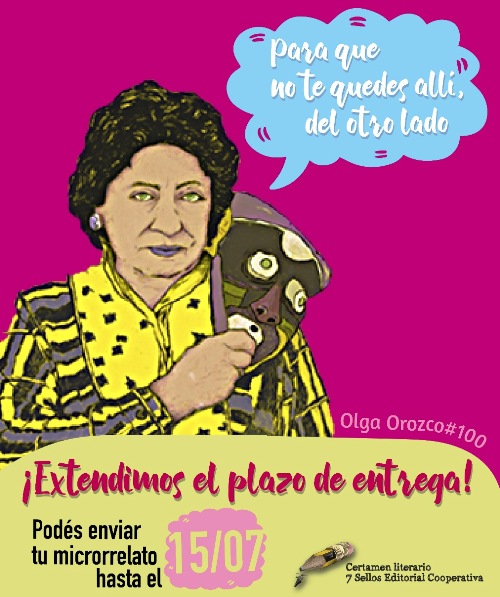 La editorial cooperativa 7Sellos extendió la convocatoria de entrega de microrrelatos hasta el próximo 15 de julio. El concurso tiene un carácter solidario y tiene como disparador el centenario de la escritora y poeta pampeana Olga Orozco.