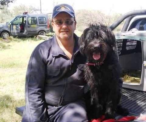 El binomio formado por Héctor Martín Juanes y su perra Akira, del Departamento K9 de la Federación de Bomberos Voluntarios de La Pampa e integrante del Cuartel de Miguel Riglos, está en la localidad de Quitilipi, Chaco, como parte de la Brigada Nacional de Búsqueda y Rescate de K9.