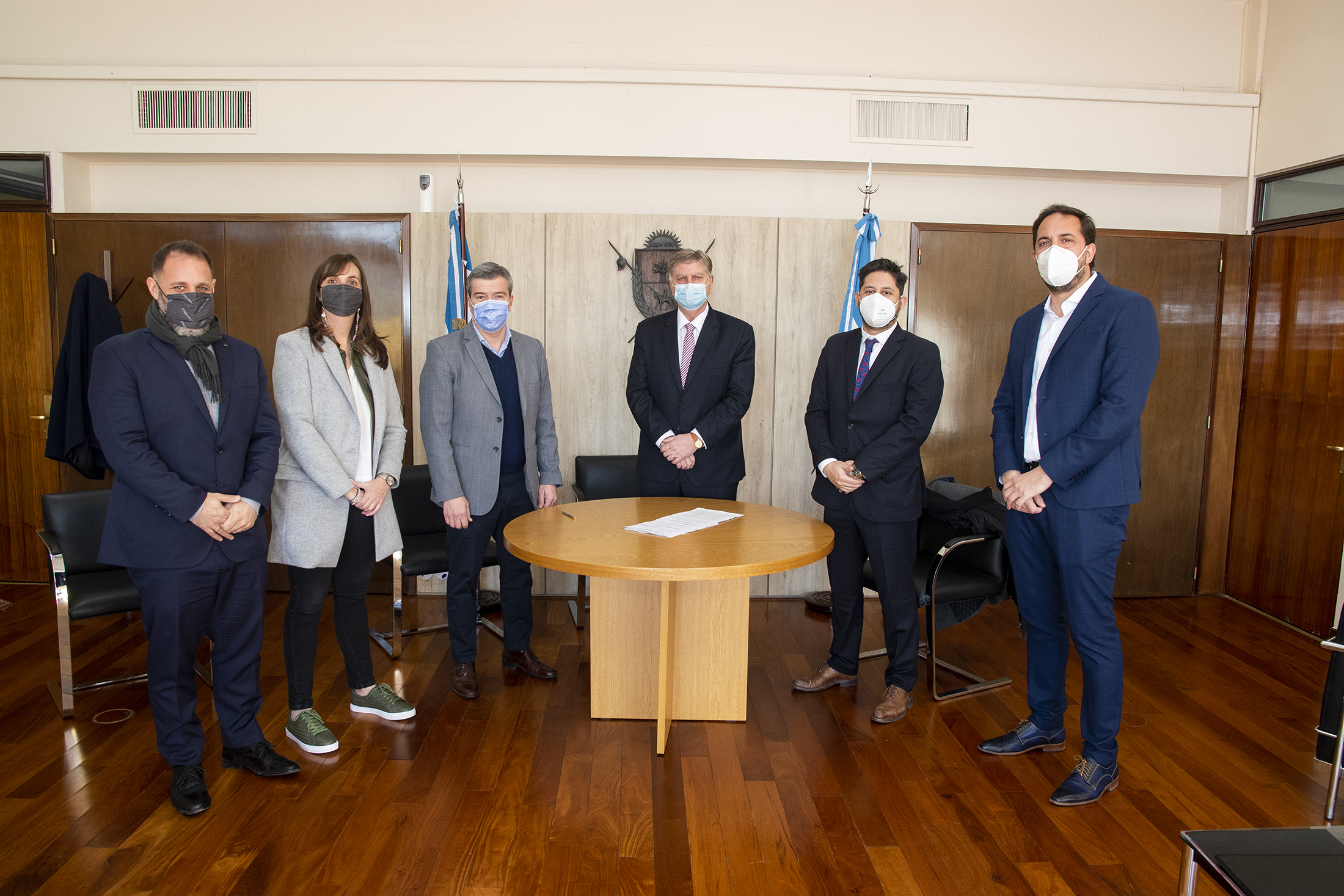 La firma se realizó en el despacho del gobernador Sergio Ziliotto, donde el ministro de Desarrollo Social, Diego Álvarez y el vicepresidente del directorio del Organismo Regulador del Sistema Nacional de Aeropuertos, Federico Muriel, rubricaron el convenio.
