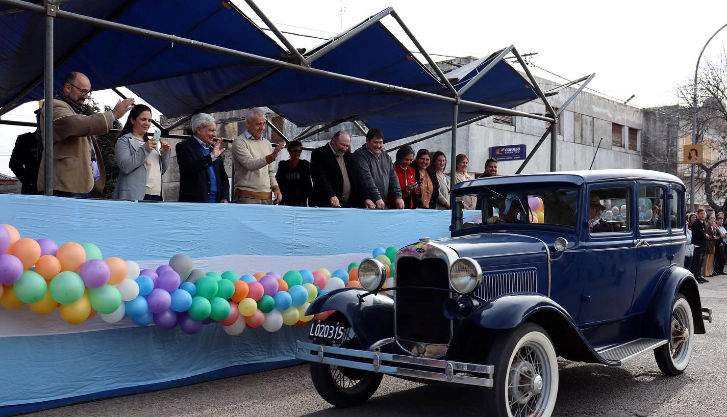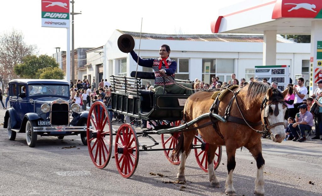 El colorido desfile abrió con el ya casi legendario Héctor Gambarini que, esta vez, no montó su caballo sino un antiguo – y en perfecto estado auto de colección.