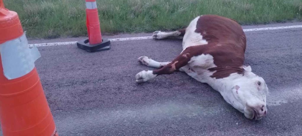 El animal vacuno se habría escapado de un predio rural lindante y quedó muerto sobre la cinta asfáltica. Intervino personal policial de Carro Quemado.