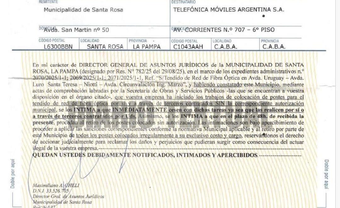 El municipio santarroseño labró actas a Clarín por cablear en zonas no autorizadas