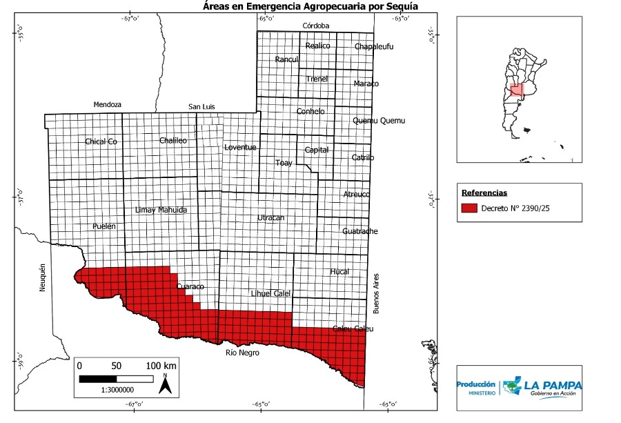 La Comisión Provincial de Emergencia y Asistencia Agropecuaria, convocada por el Ministerio de la Producción de La Pampa, determinó la continuidad del estado de emergencia desde el 1 de noviembre de 2025 hasta el 30 de abril de 2026, en los departamentos Lihuel Calel, Curacó, Caleu Caleu y Puelén.
