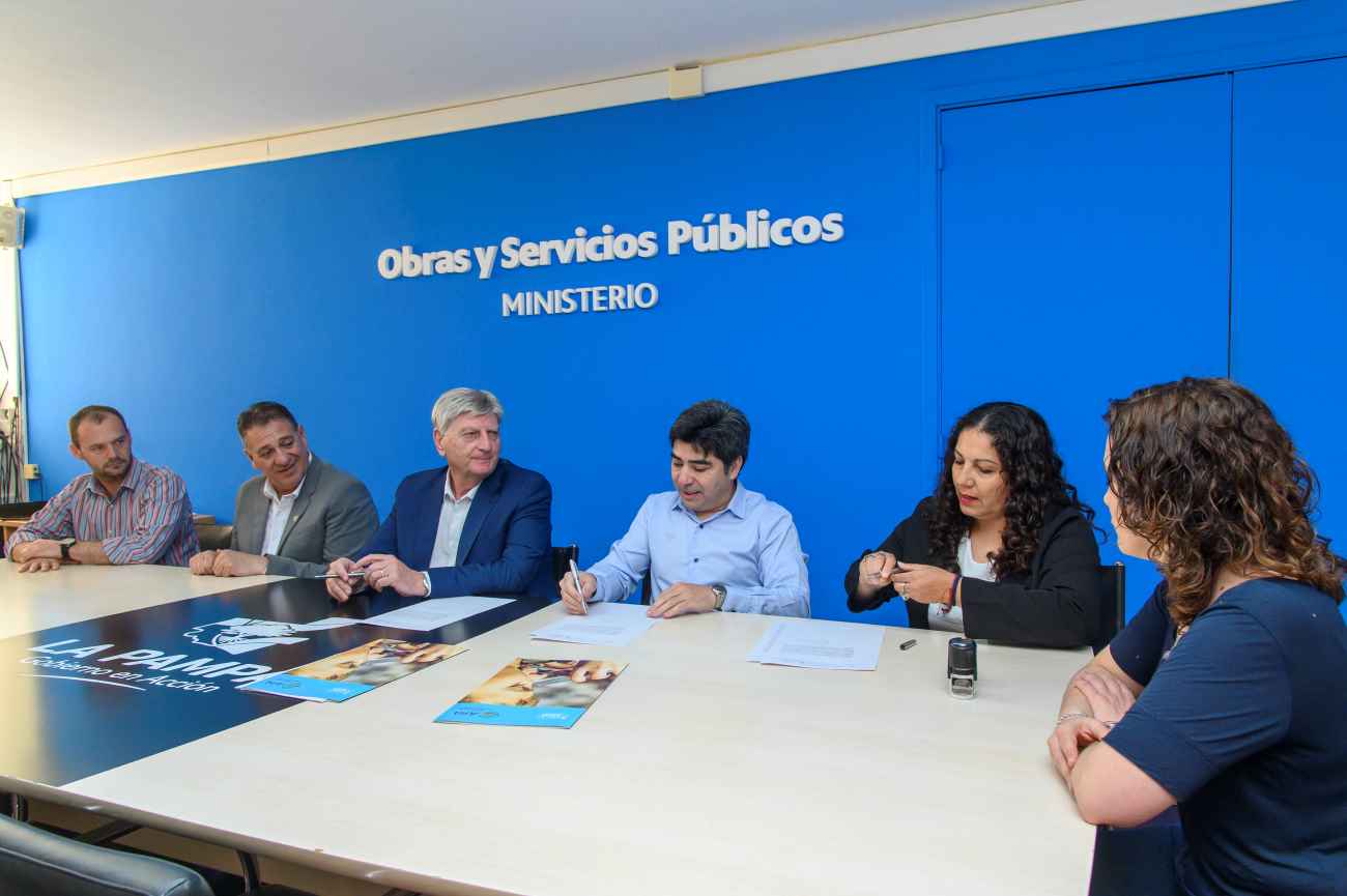 El acto se realizó en Casa de Gobierno y contó con la presencia del ministro de Gobierno y Asuntos Municipales, Pascual Fernández; el administrador provincial del Agua, Fabricio González; la subsecretaria de Obras Públicas, Antonela Dosso; la intendenta de Maisonnave, Rodecia Bernelli; y el intendente de Alpachiri, Iván Fuhr.