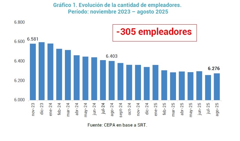 Según el informe, la cantidad de empleadores con personal registrado pasó de 6.581 a 6.276, lo que implica una contracción del 4,6%.
