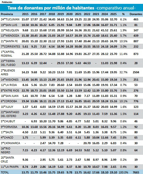 La Pampa se encuentra en el último puesto a nivel nacional en el ranking de donación de órganos con una tasa de 2,65 donantes de órganos por millón de habitantes, según las cifras reveladas por el Instituto Nacional Central Único Coordinador de Ablación e Implante (INCUCAI).