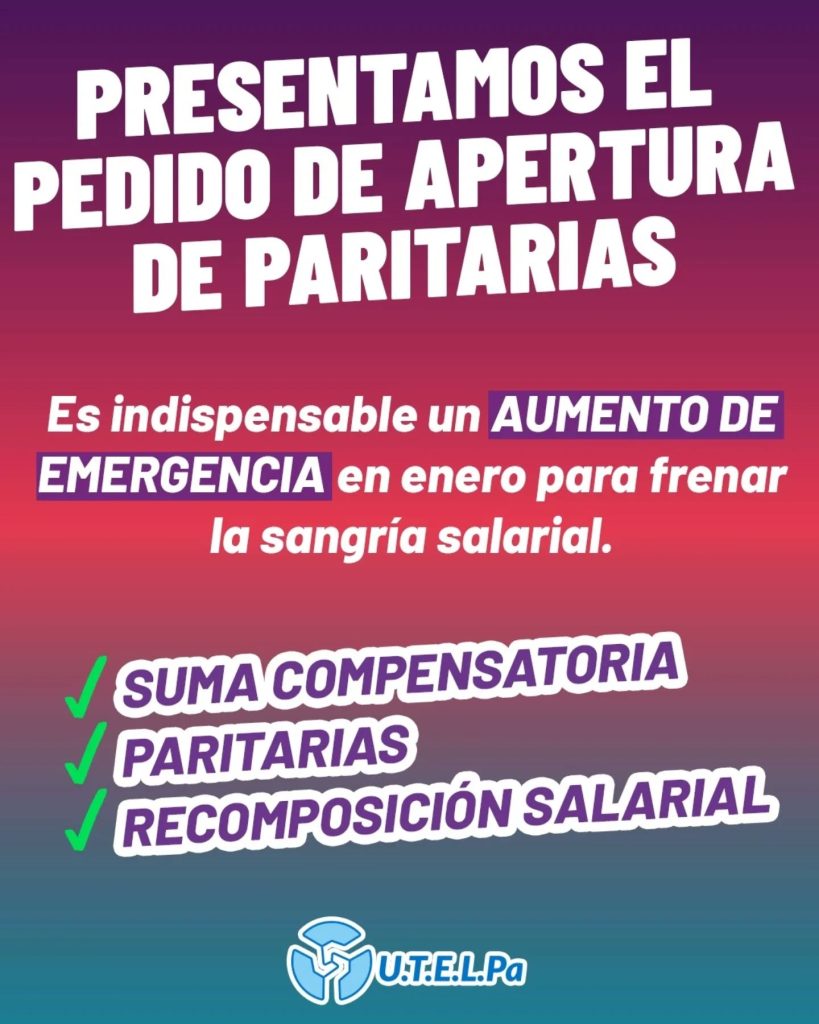 La Unión de Trabajadores de la Educación de La Pampa (Utelpa) pidió formalmente este miércoles la apertura de paritarias para discutir en forma urgente una recomposición salarial y “frenar la pérdida de poder adquisitivo” de la docencia pampeana.