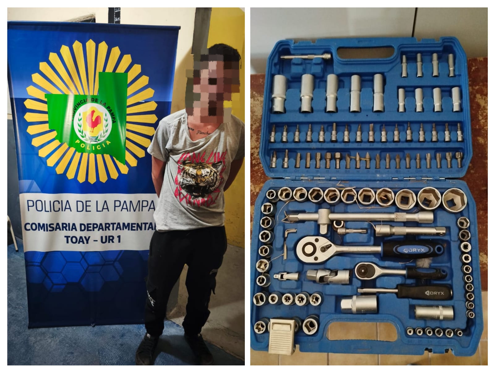 Un joven de 21 años, de Toay, fue demorado dos veces en un lapso de tres horas: primero por causar molestias a vecinos e intentar agredir a la Policía y, luego, por robar una caja de herramientas de una vivienda.