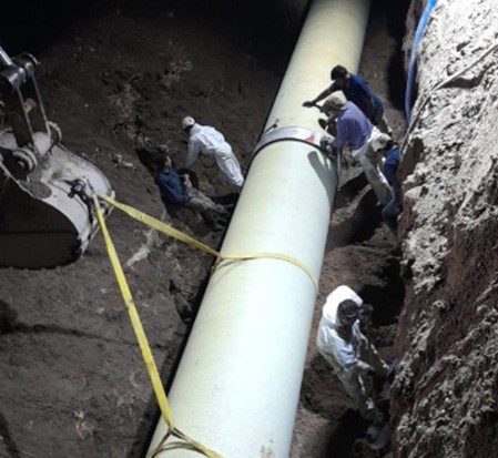 Los trabajos consistieron en el reemplazo de un tramo de 20 metros de cañería Prodinco de 1.200 milímetros de diámetro, clase 14, por una nueva cañería O’teck clase 20, lo que permitirá optimizar la seguridad y confiabilidad del sistema, según informó.