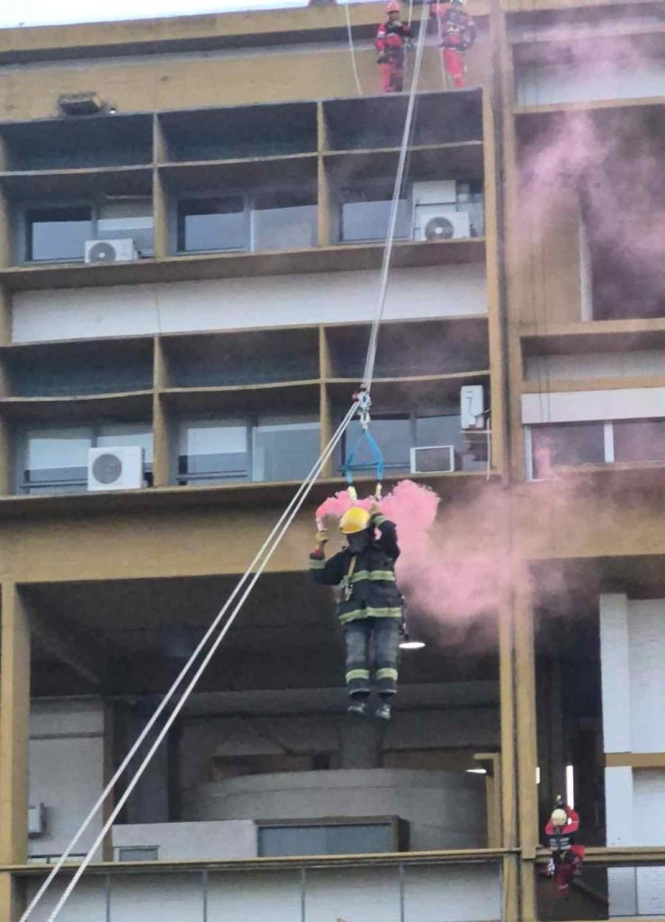 “El personal de cuerdas vino con la propuesta de conmemorar los cinco años de la creación de la División de Rescate con Cuerda con una exhibición visible para la comunidad en Casa de Gobierno. Con las autorizaciones correspondientes se pudo realizar esta práctica que ya estaba entrenada, pero que tuvo un sentido institucional y conmemorativo”, señaló.