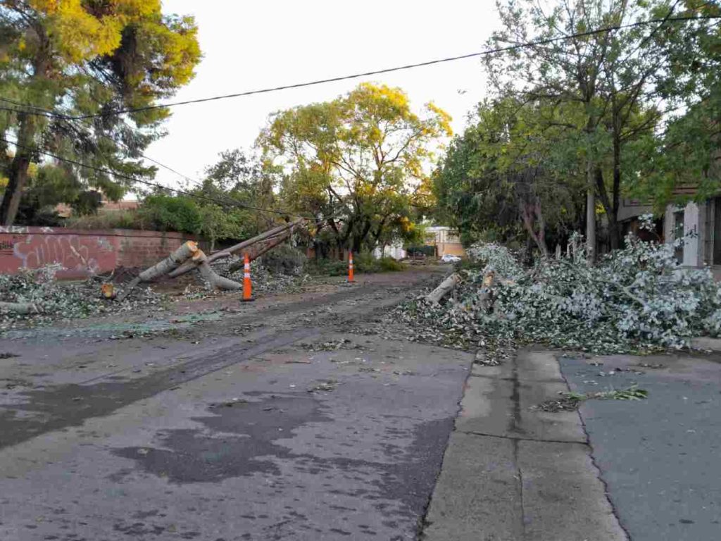 Además, cuadrillas de la municipalidad y de la Cooperativa Popular de Electricidad (CPE), junto a bomberos, trabajan en diferentes sectores de Santa Rosa para despejar las calles de plantas caídas, cables y columnas, y restablecer los servicios afectados por el temporal.