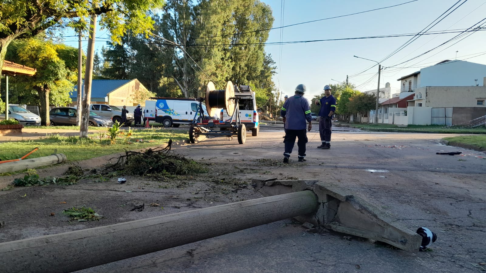 De todas maneras, las cuadrillas de la CPE están trabajando para retirar y colocar nuevas columnas. También cableando.