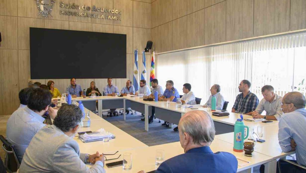 Participaron ministros y ministras de distintas carteras, junto a autoridades de la Administración Provincial del Agua (APA), de la Dirección Provincial de Vialidad (DPV) y el jefe de la Policía de La Pampa.