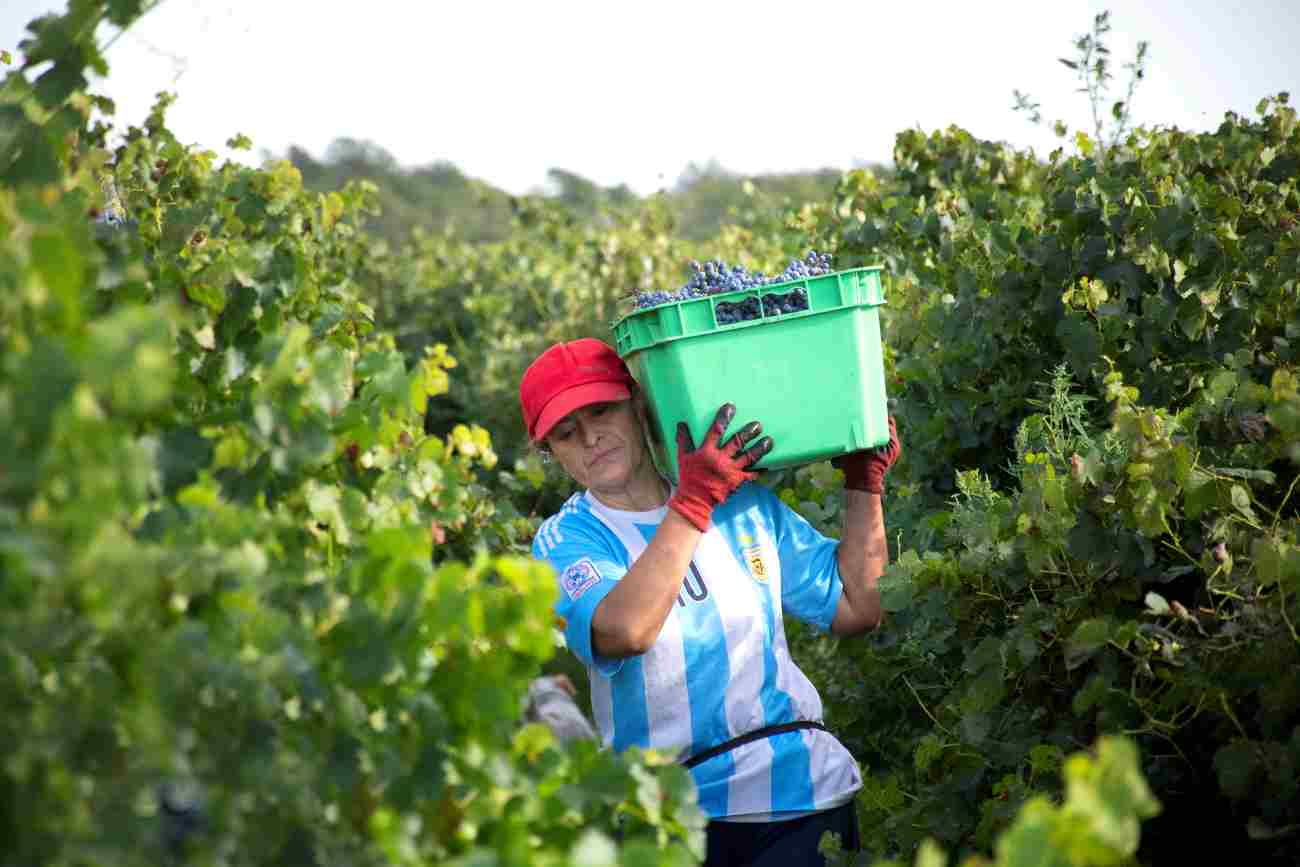 La reportera gráfica de la Agencia Provincial de Noticias acompañó a las productoras en el trabajo de campo, que se inició muy temprano por la mañana, con la cosecha de la uva Marcelan. Después del 14 de marzo, cuando se realiza la fiesta del pueblo, empieza la recolección de la uva Malbec.