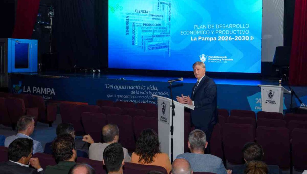El gobernador Sergio Ziliotto encabezó la presentación del Plan de Desarrollo Económico y Productivo 2026–2030 en el Centro Cultural Provincial Medasur de Santa Rosa y destacó la participación de todos … Sigue leyendo Ziliotto presentó el Plan de Desarrollo 2026–2030, una hoja de ruta para el crecimiento de La Pampa