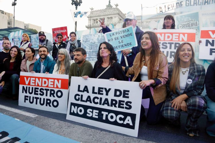 Tras la audiencia pública en la que expuso una ínfima parte de los más de 100 mil inscriptos para participar, organizaciones ambientalistas y agrupaciones políticas que rechazan la reforma de la Ley de Glaciares (entre ellas, La Cámpora) convocaron a una marcha en las afueras del Congreso, que estuvo marcada en un principio por la tensión con los efectivos de seguridad que corrieron a manifestantes.
